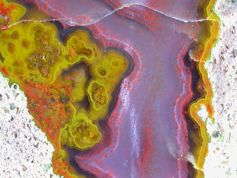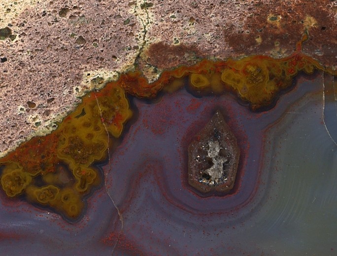 The first of the bigger St Egidien specimens - and one of the best in both its shape and content. This is a quieter specimen with wonderfully swirling agate with moss and a small crystal cave. It is also a fine example of the curious two-colour matrix that these stones often have.