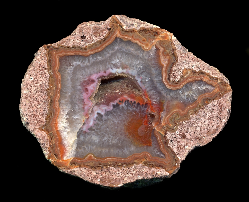 This is an exquisite European style thunderegg geode with some gorgeous quartz and other features.
