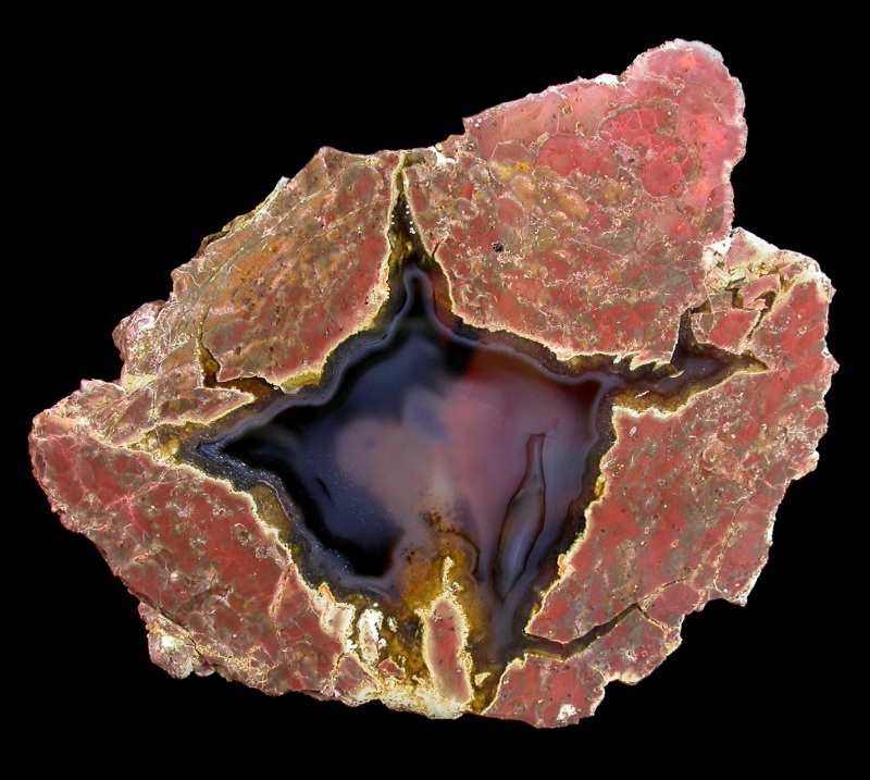 A very dramatic specimin with a flaming matrix surrounding dark and clear agate.